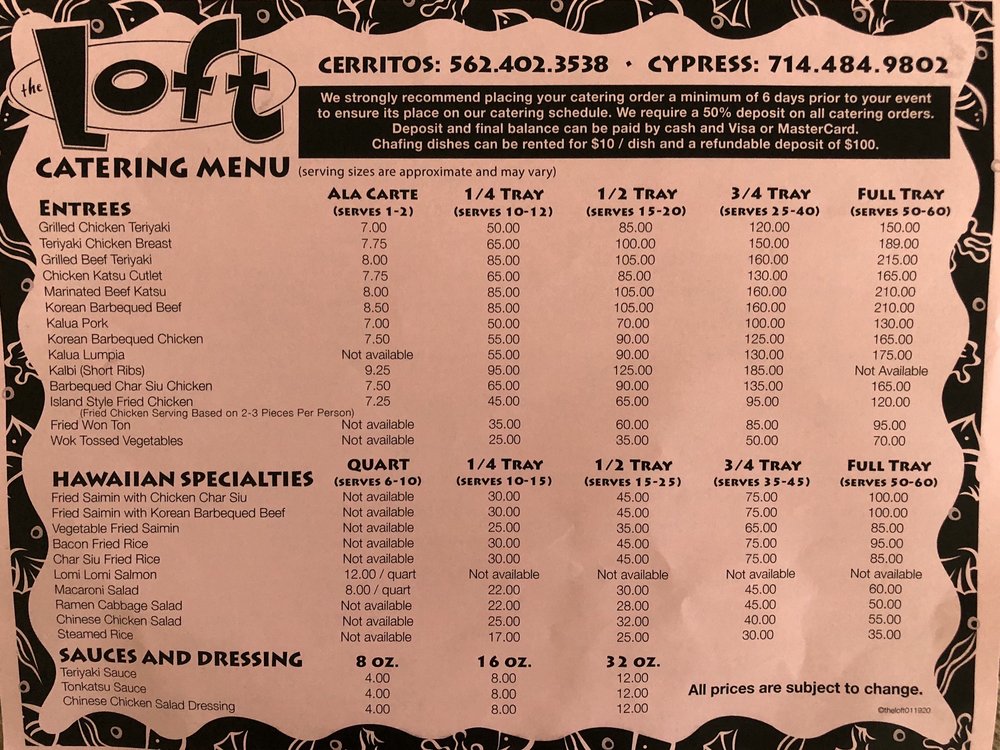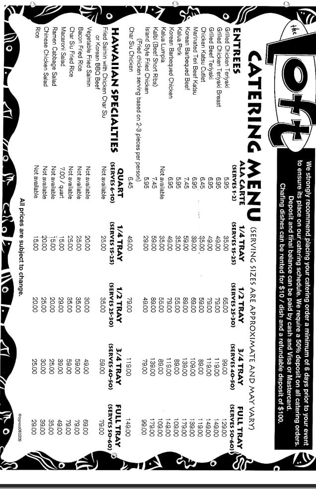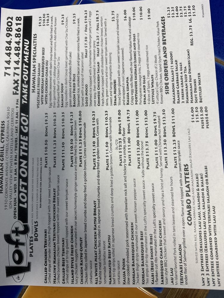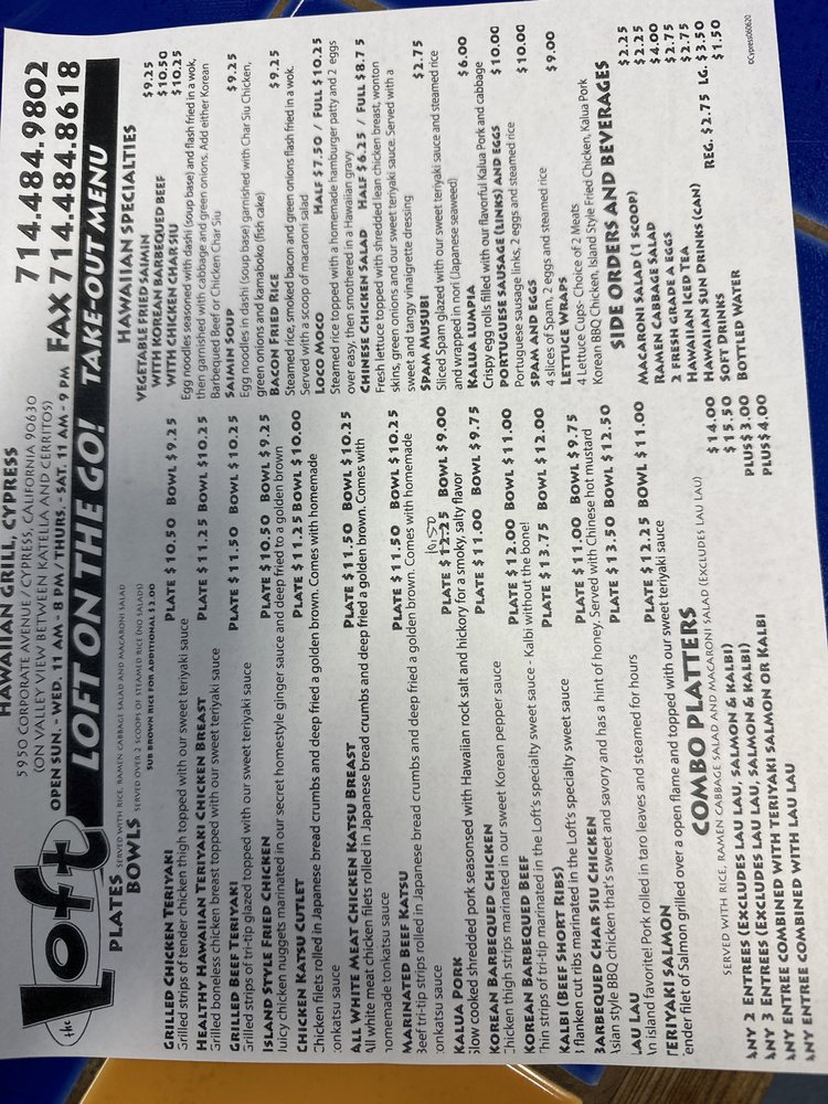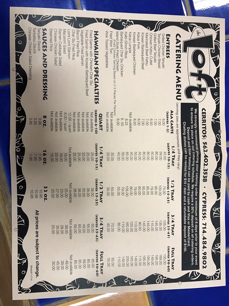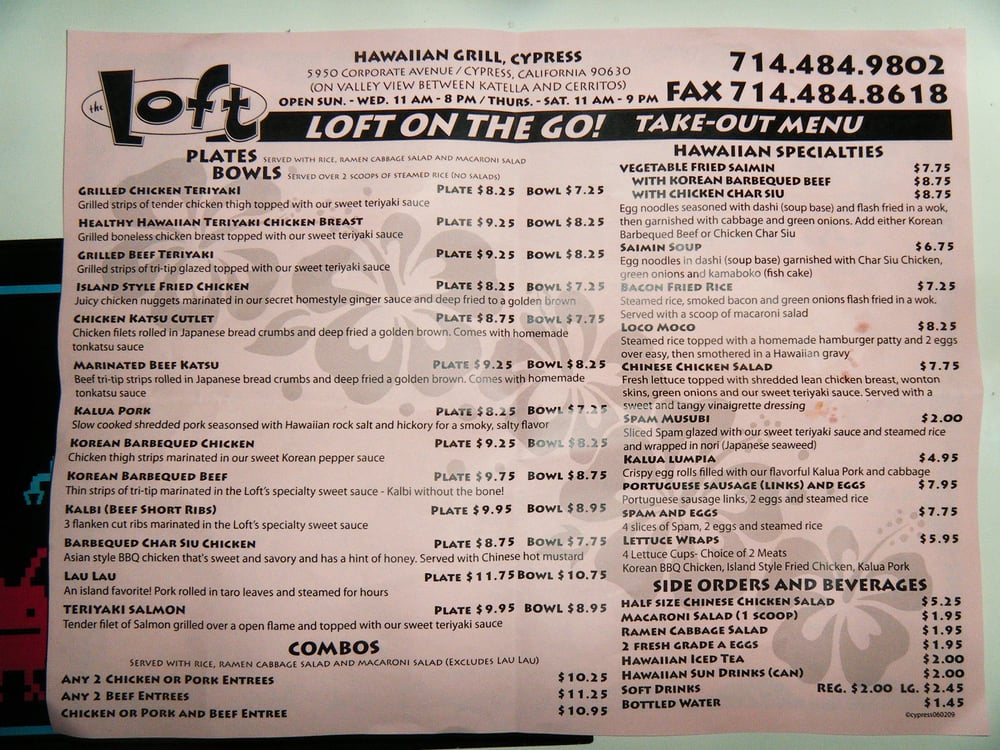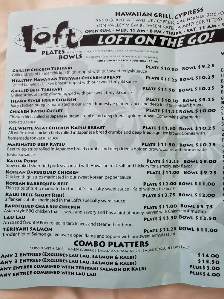 The Loft Hawaiian Restaurant Menu (Update 2025)