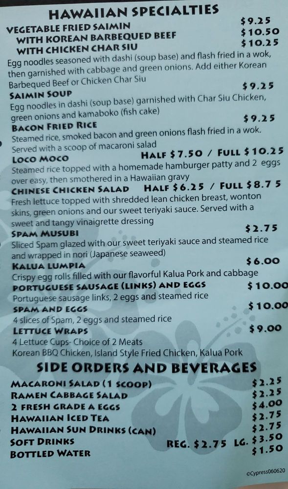 Introducing The Loft Hawaiian Restaurant, a casual Hawaiian eatery located in Cypress, CA. Known for its flavorful Hawaiian dishes, including Korean BBQ Beef, Kalua Pork, Island Fried Chicken, Lau-lau, and Kalbi Beef. Customers rave about the consistency in service and quality of food. The Sweet Potato Manju dessert is a must-try. Reviews highlight the deliciousness of the chicken Katsu and the friendly staff. The dining area is pleasant with TVs and ample seating options. While some mention small portions in certain dishes, overall, the food is tasty and satisfying. The restaurant is not vegetarian-friendly, but offers gluten-free and keto options. The chicken Katsu, tonkatsu sauce, and teriyaki sauce come highly recommended. A perfect spot for group gatherings or a casual lunch or dinner. Experience the authentic flavors of Hawaii at The Loft Hawaiian Restaurant.